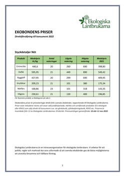 21 DECEMBER 2022. Prisinsamling direkt från ekolantbrukare, genomförd under hösten 2022.